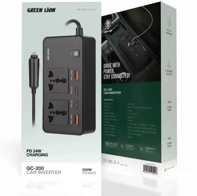 اینورتر خودرو 200 وات و شارژر فندکی فست شارژ گرینلاین مدل GC-200، خودرو شما به یک مرکز برق همراه تبدیل میشود. طراحی هوشمند، توان خروجی بالا و پورتهای متنوع این دستگاه باعث شده تا در سفر، کمپینگ یا شرایط اضطراری، همیشه به منبع برق مطمئن دسترسی داشته باشید. از شارژ گوشی و لپتاپ گرفته تا راهاندازی لوازم ضروری، GC-200 همراهی قابلاعتماد برای لحظاتیست که نیاز به برق دارید، اما پریز در دسترس نیست.