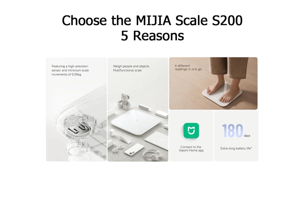 ترازوی هوشمند شیائومی Mijia S200 مدل MJTZC02YM یکی از جدیدترین و کاربردی‌ترین ابزارهای نظارت بر تناسب اندام از برند محبوب شیائومی است. این مدل با ترکیب طراحی مینیمال، تکنولوژی دقیق و قابلیت‌های هوشمند، به یکی از گزینه‌های محبوب برای کاربران خانگی و حرفه‌ای تبدیل شده است. اگر به دنبال یک ابزار دقیق برای کنترل وزن، بررسی روند پیشرفت رژیم یا ارزیابی سلامت جسمانی هستید، ترازوی هوشمند شیائومی Mijia S200 مدل MJTZC02YM می‌تواند انتخابی کاملاً مناسب باشد.