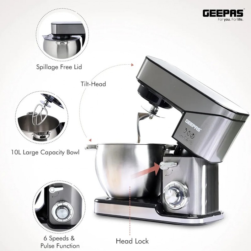 توان بالای 2000 وات در کنار کاسهی بزرگ ۱۰ لیتری از جنس استیل ضد زنگ، باعث میشود بتوانید حجم زیادی از مواد غذایی را در کوتاهترین زمان مخلوط یا ورز دهید. این دستگاه با ۳ سری کاربردی شامل همزن بالونی، همزن تخت و قلاب خمیر عرضه میشود که نیازهای مختلف شما از همزدن مواد سبک تا تهیه خمیرهای سنگین را پوشش میدهد.